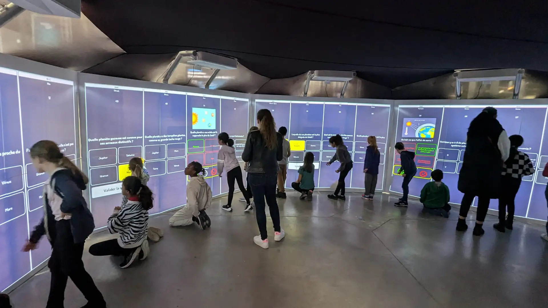 J'ai réalisé le développement logiciel de cette salle immersive, constituée de 7 projecteurs dans une structure en hexagone, à l'aide du logiciel Unreal Engine. L'application qui anime cette installation permet la mise en réseau de chaque écran, la synchronisation des contenus pédagogiques entre eux et un contrôle de l'expérience par une tablette donnée au professeur.